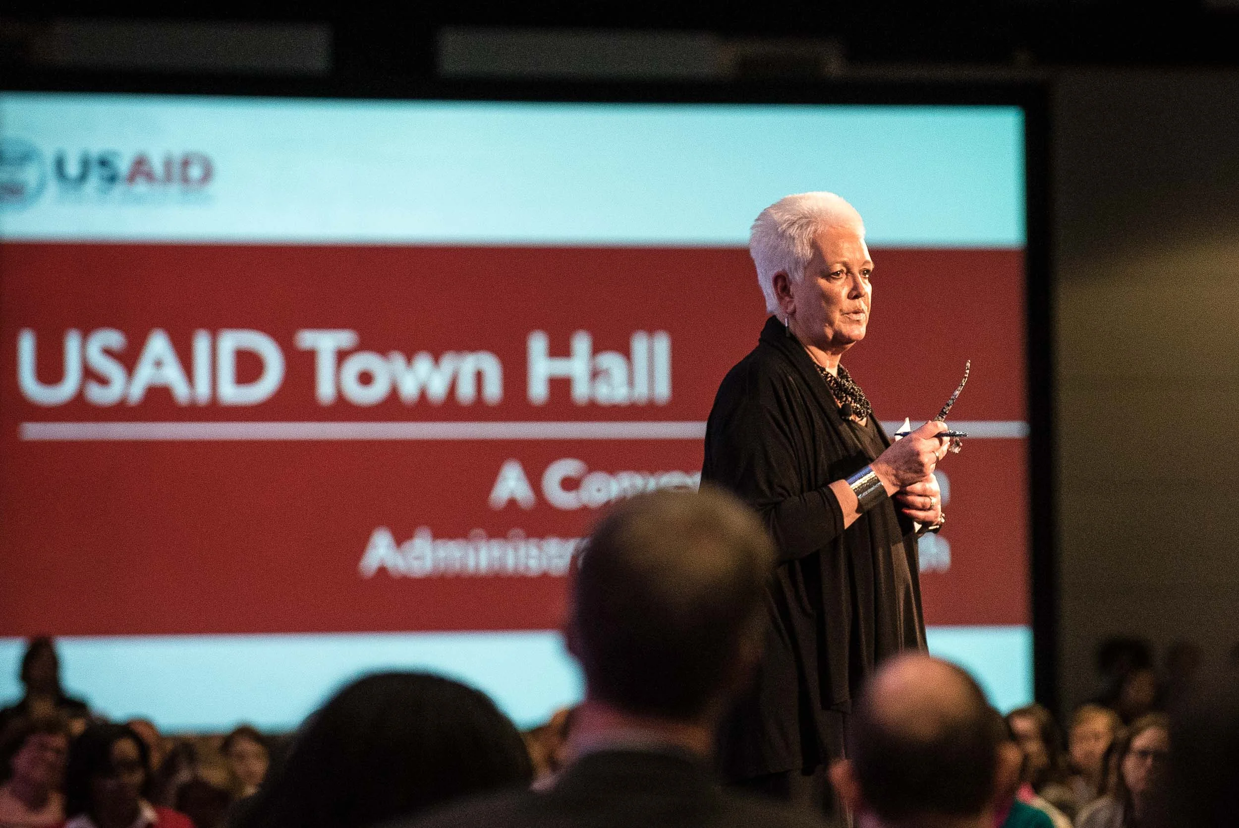 Gayle Smith is introduced as the new USAID Administrator at a town hall meeting in Washington, Dec. 10, 2015. Smith is the 17th administrator for USAID.